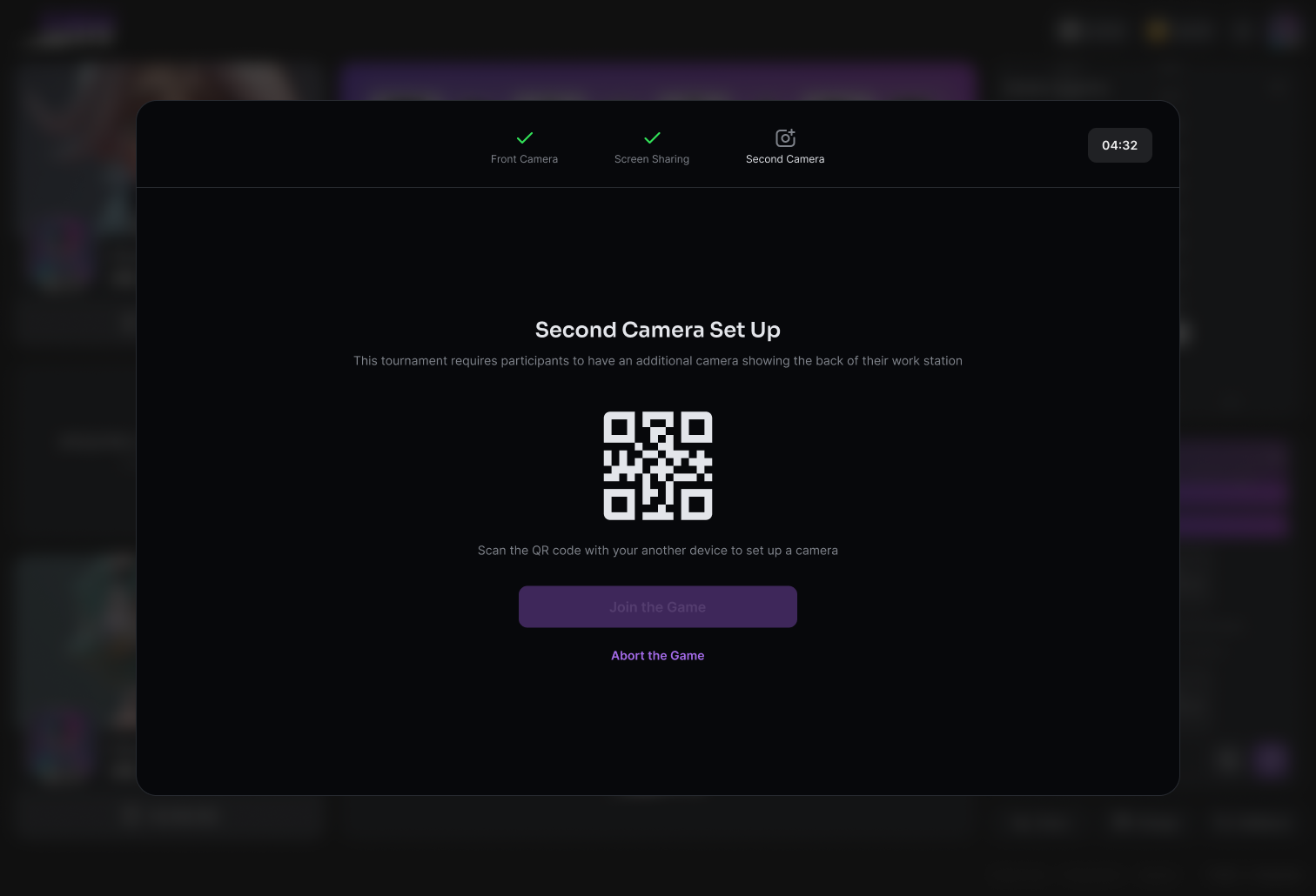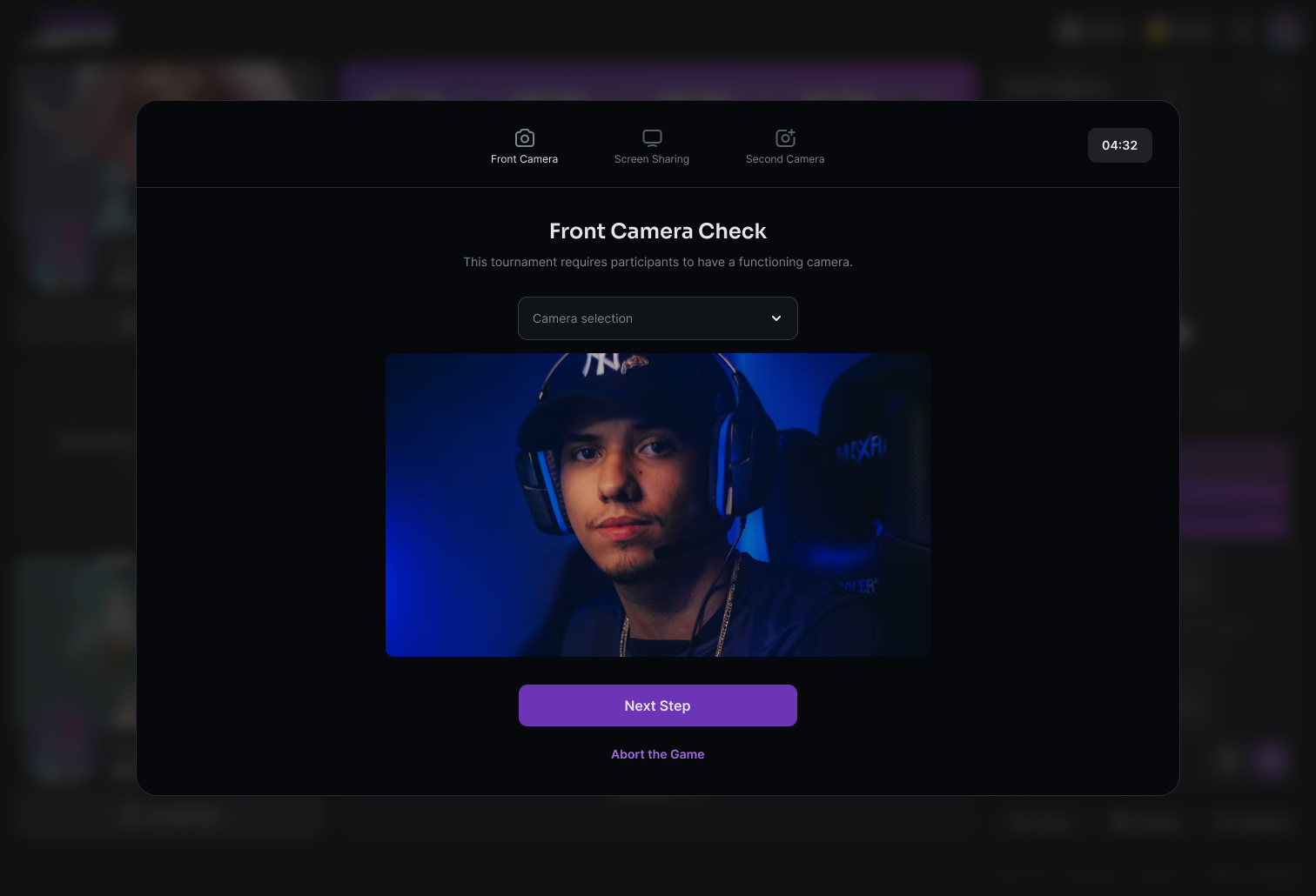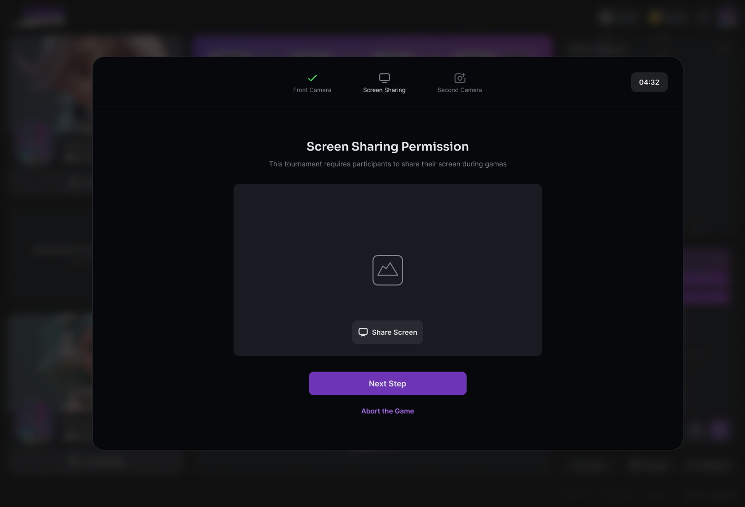 * Granting Access: You'll be asked to allow camera and screen-sharing access during onboarding in the checkout lobby before the tournament starts.